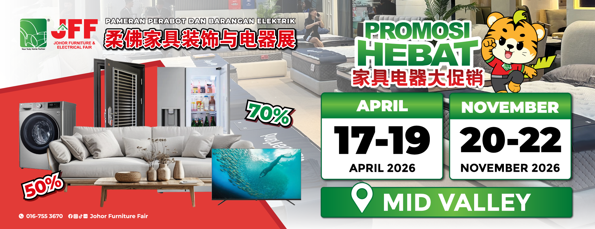 Check out the event highlights we have at Johor Furniture Fair for 3 days only! Be ready & don’t miss out on our exciting events.