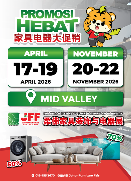The Johor Furniture Fair will be held in Mid Valley Exhibition Centre Southkey at Level 3